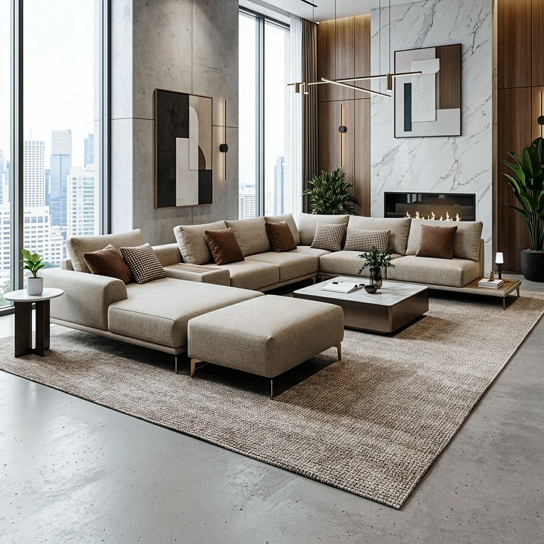 The 7-module L-shaped sofa set is a versatile and luxurious addition to any living space. Crafted for both comfort and functionality, this sofa set features built-in tables seamlessly integrated into the design, providing convenient surfaces for drinks, books, or decor. Available in both Jute and velvet fabric options, the sofa comes in a variety of colors to suit any interior style. Each module can be rearranged to fit your space perfectly, making it a flexible choice for modern homes.